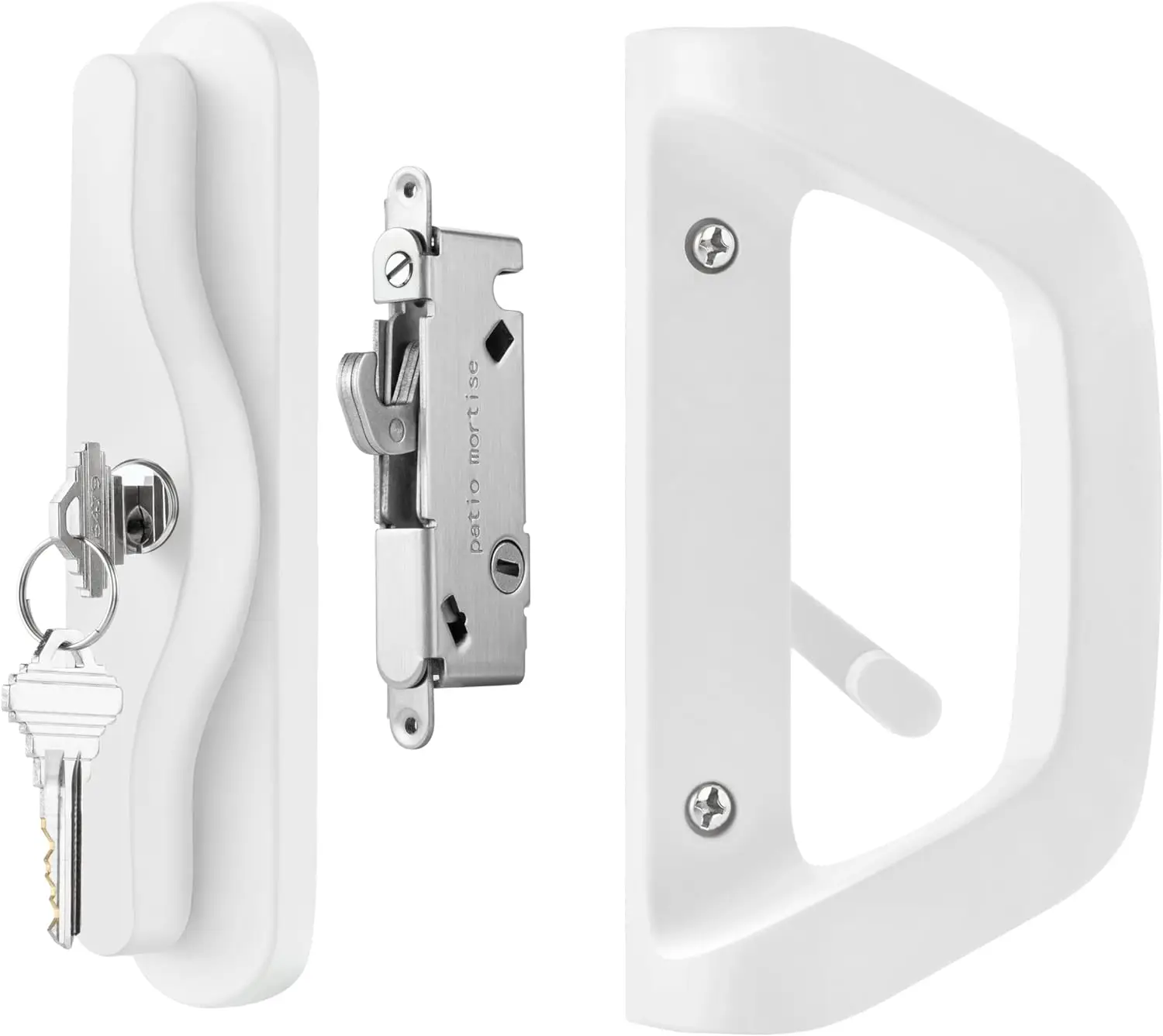 Sliding Glass Door Handle Set with Key Cylinder and Mortise Lock, Patio Door Lock Replacement