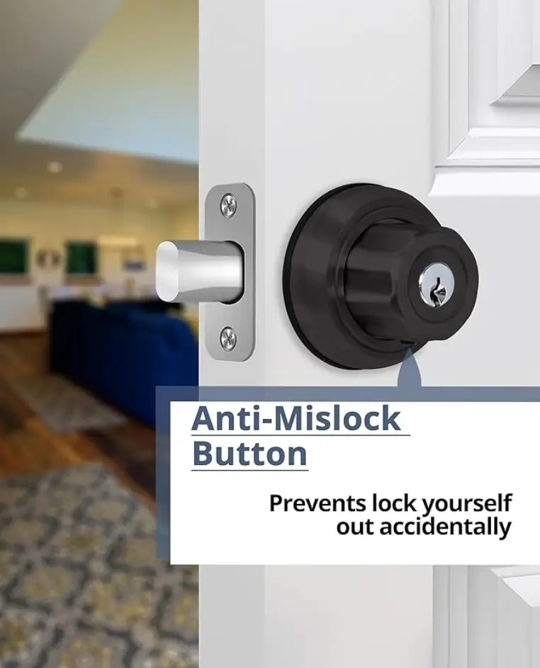 EASILOK Deadbolt Lock, Twist-to-Lock Keyless A3 Single Cylinder Deadbolt Door Lock with Anti-Mislock Button for Front Door Apartment