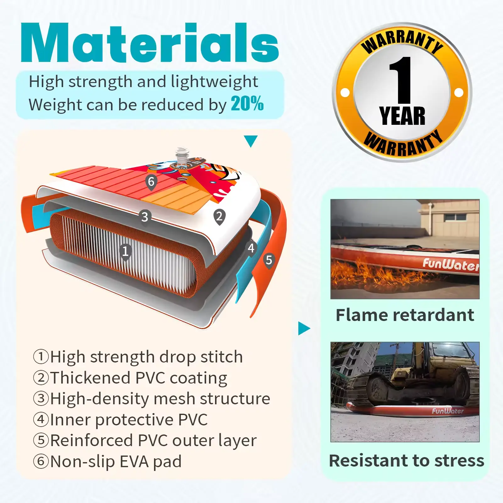 Inflatable Stand-Up Paddleboards, 4mm cross vertical design EVA effective anti-slip reduces falls and gives you better balance when standing. 2-layer PVC exteriors with V-drop stitch core construction creates better stability and durability. Brushed thickening blow up SUP Paddle Board with non-slip soft deck, ideal for all skill levels for less accidents or injuries should you fall.